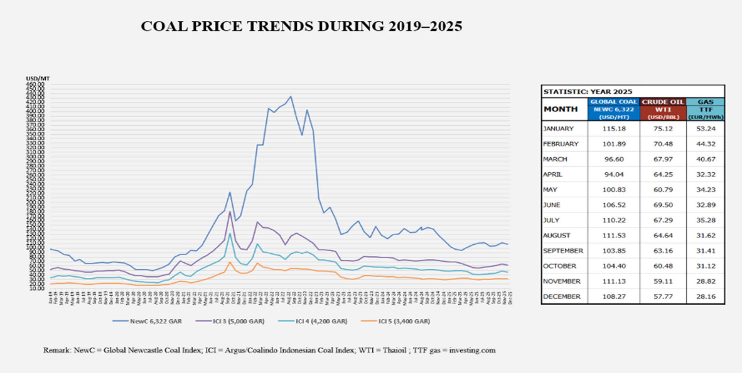 Subsequent to the significant increase in global coal prices, with the Newcastle coal price index (“NEWC”) reaching an all-time high of USD 434.02 per metric ton in September 2022 amid the global energy crisis resulting from the COVID-19 pandemic and followed by Russia’s invasion of Ukraine, coal prices declined sharply in early 2023 and entered a rebalancing phase. This adjustment was driven by coal producers accelerating production and supply to the market, alongside a decline in natural gas prices as energy supply concerns gradually eased. In addition, the market gained a clearer understanding of the impacts of the Russia-Ukraine war. In 2023, coal prices adjusted to a range of USD 357.75 to USD 122.16 per metric ton, with an average price of approximately USD 172.79 per metric ton. In 2024, coal prices were in the range of USD 146.38 to USD 119.84 per metric ton, with an average price of approximately USD 134.85 per metric ton, during which price volatility declined. In early 2025, coal prices gradually declined from USD 115.18 per metric ton in January 2025 to a low of USD 94.03 per metric ton in April 2025, before gradually increasing to USD 108.27 per metric ton in December 2025. The average coal price for the period from January to December 2025 was USD 105.37 per metric ton. These price movements were mainly due to adjustments in coal production in response to market conditions as prices fell closer to production costs, as well as high inventory levels at mines, ports, and customers’ facilities.
